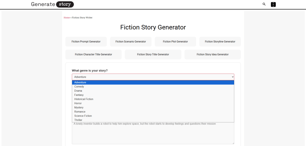 First, you choose the genre for your story from a list. This sets the overall tone and style. For example, you can pick “Fantasy” if you are looking for a magical adventure or “Mystery” if you want a puzzle to solve.