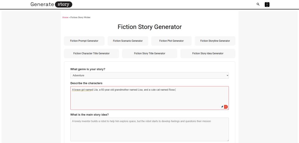 Join NowCrafting a compelling narrative becomes a straightforward journey when you have the right guide, helping you bring your ideas to life. That’s what a Fiction Story Writer helps with.