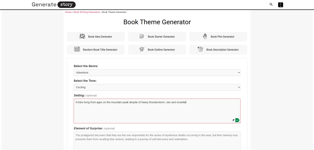 How to Create a Book Theme Using GenerateStory’s Book Theme Generator?