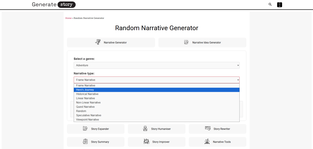 Choose a narrative type: Next, select a narrative type from another dropdown. You have various options, like Linear Narrative, Non-Linear Narrative, and Hero’s Journey. This choice helps shape the structure of your story.